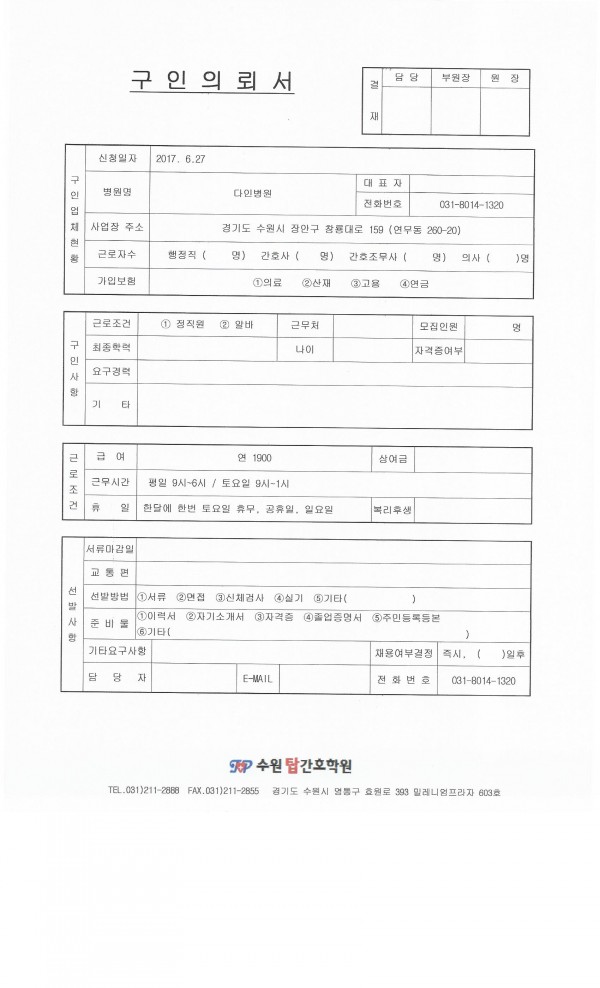 | 제목 | 다인병원 채용공고입니다. | 작성일 | 17-06-27 14:54 |