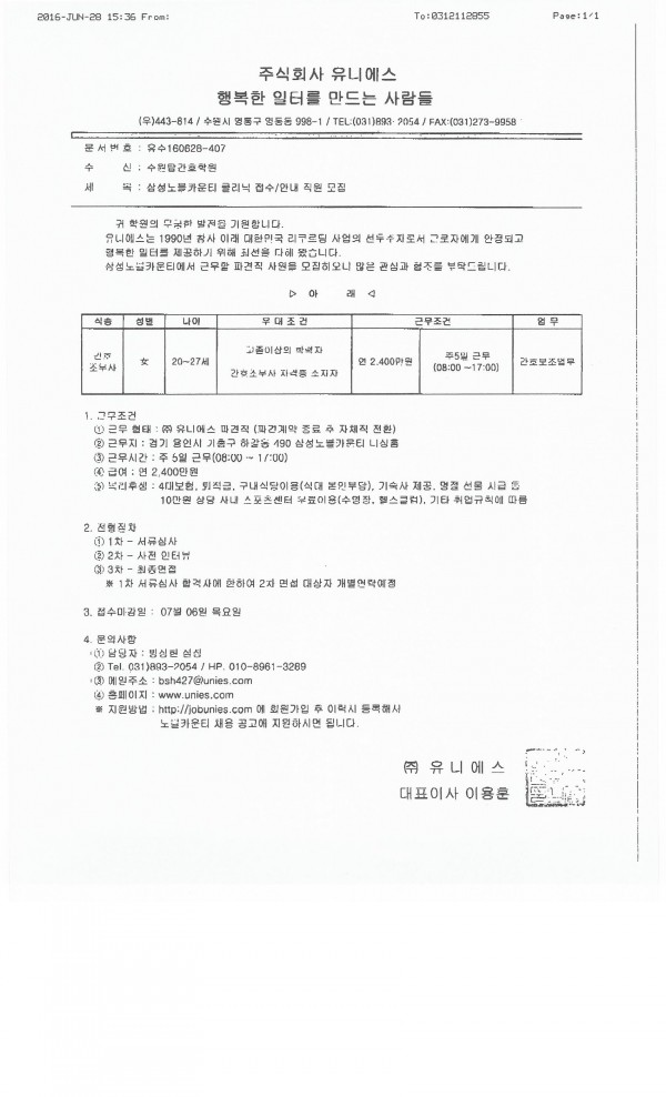- 다음글한양정형외과에서 채용정보가 왔습니다 16.06.29