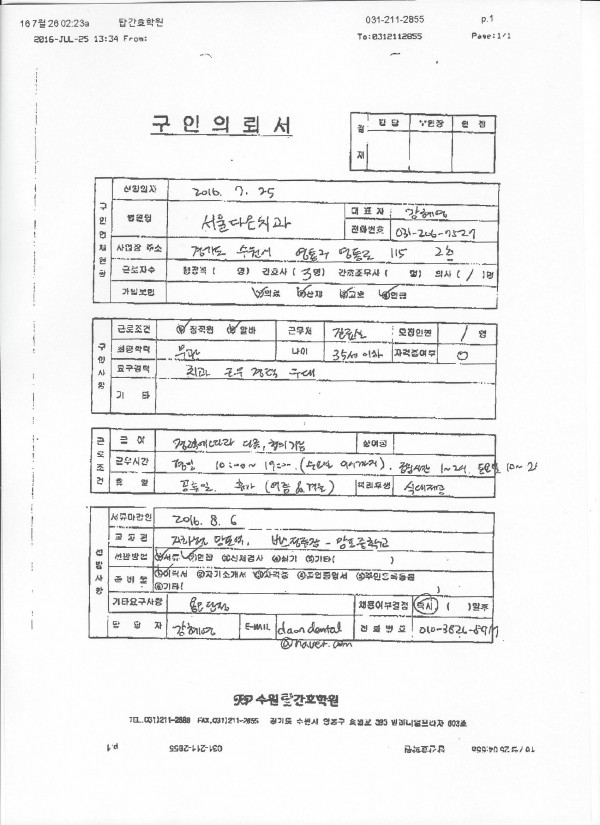 | 제목 | 서울다은치과 채용공고입니다. | 작성일 | 16-07-26 11:44 |