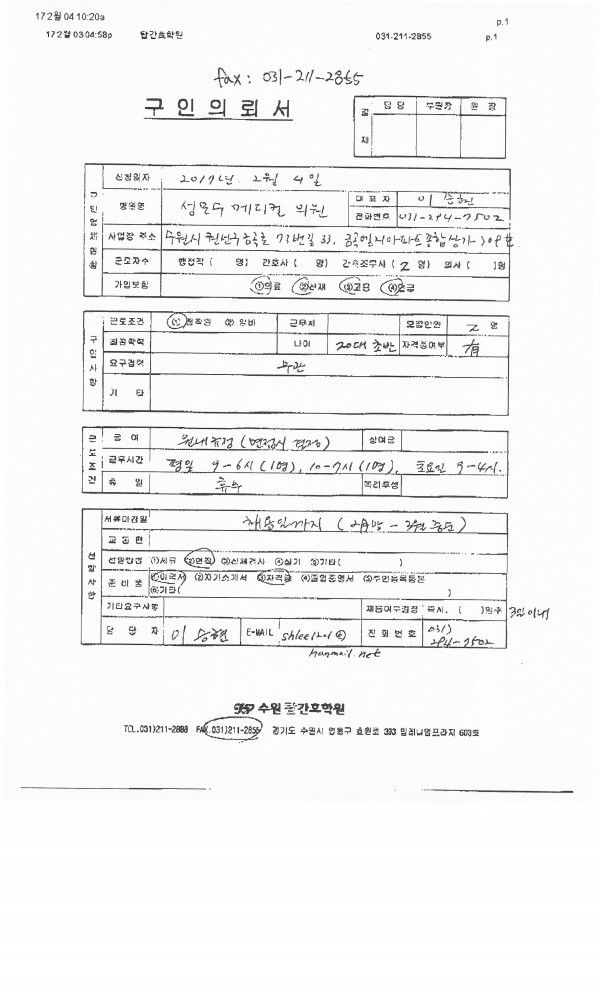 - 다음글마이스터 성형외과/피부과의원 채용공고입니다. 17.02.03