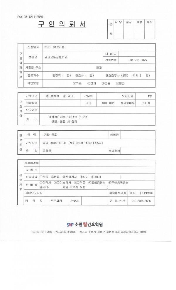 | 제목 | 광교으뜸정형외과 채용공고입니다. | 작성일 | 18-01-29 11:13 |